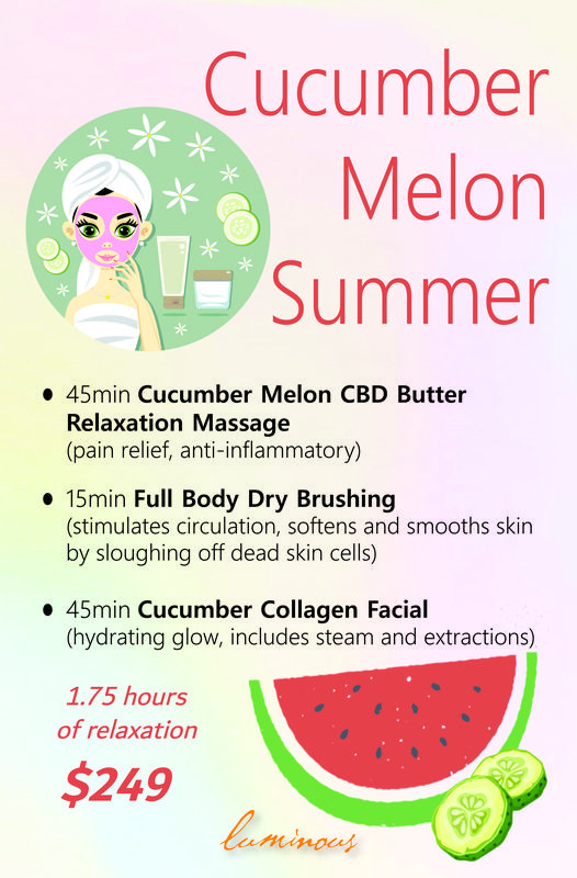 Our 30 minute Luminous facial(excludes extractions) complimented with a 30 minute Swedish massage followed by a 15 minute foot scrub, rub and moisturize.